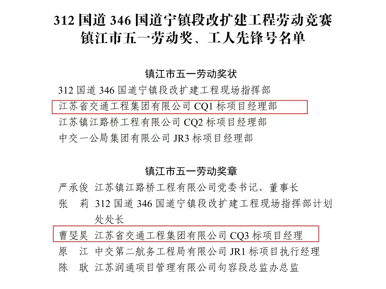江蘇交工這些集體和個人榮獲“鎮(zhèn)江市五一勞動獎項”