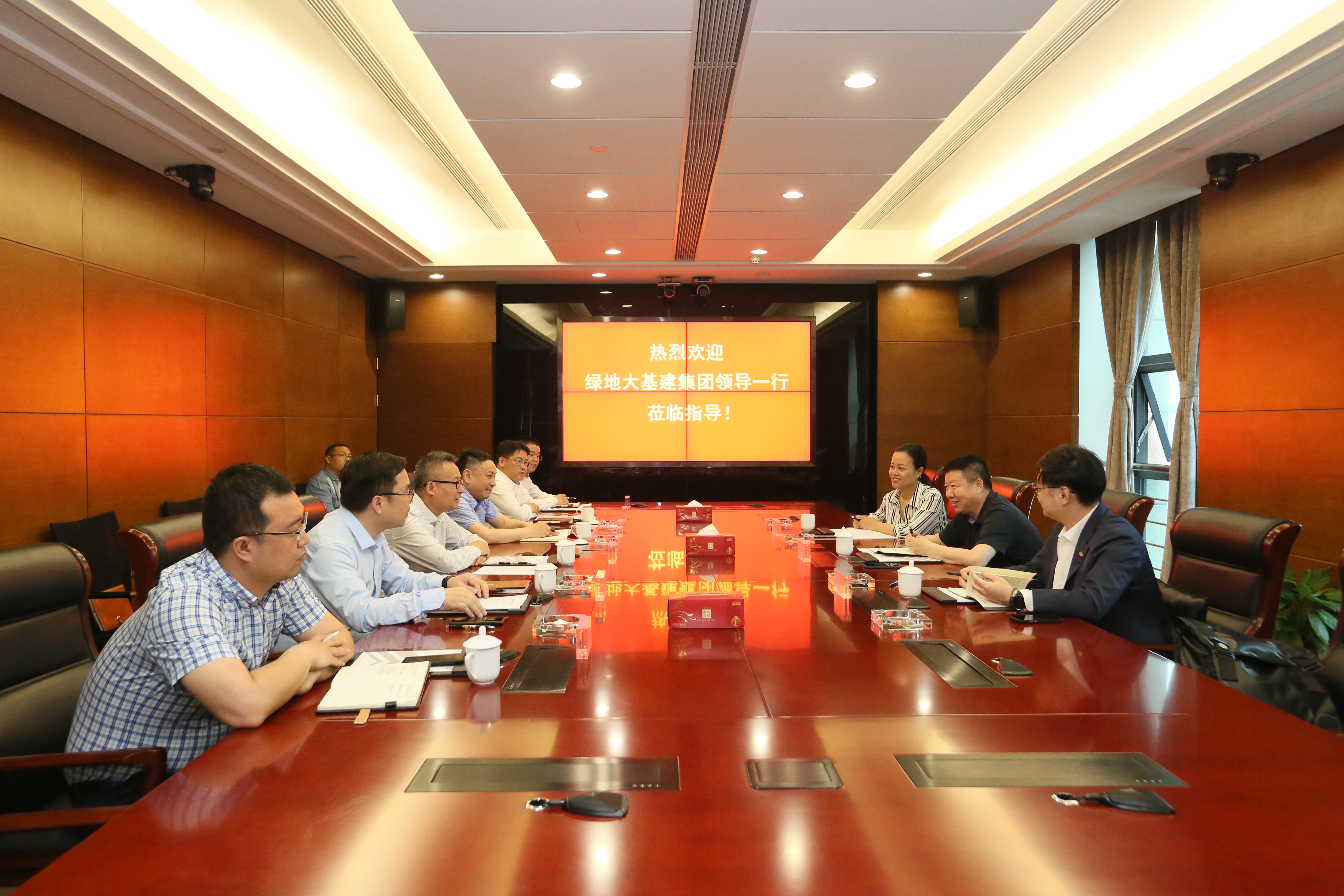 為進(jìn)一步賦能大基建高質(zhì)量發(fā)展,5月11日,綠地大基建集團(tuán)總裁室領(lǐng)導(dǎo)洪貴云一行來(lái)江蘇省建開(kāi)展工作調(diào)研。集團(tuán)總裁仇天青、執(zhí)行副總裁黃建燦、執(zhí)行副總裁蔣寧、副總裁方偉等參加座談交流會(huì)。