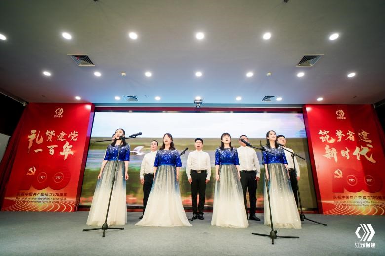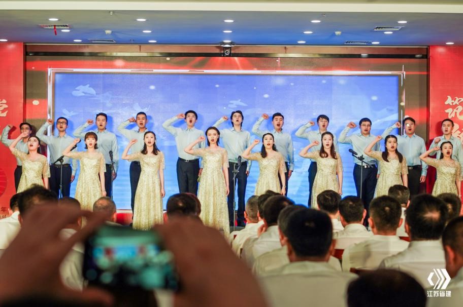 活動(dòng)最后,全體黨員齊唱《沒有共產(chǎn)黨就沒有新中國》,鏗鏘嘹亮的歌聲唱出“奮斗百年路”的初心,質(zhì)樸凝練的語言吹響“啟航新征程”的號(hào)角,盡顯新時(shí)代下省建人的新使命、新?lián)?dāng)與新作為,為表彰大會(huì)暨文藝匯演畫上圓滿句號(hào)。