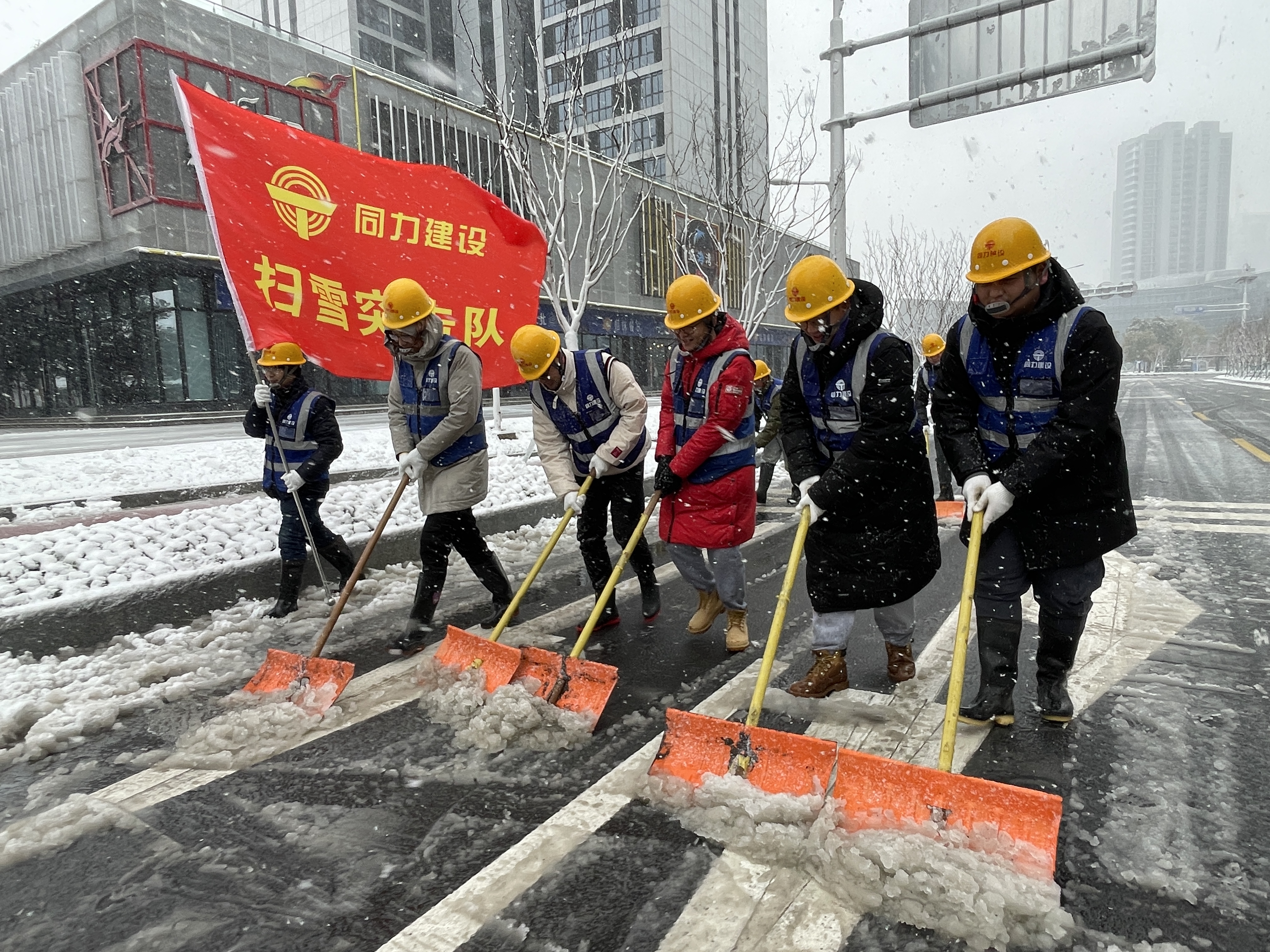 新春佳節(jié)后的第一個(gè)工作日,南京迎來(lái)了虎年的第一場(chǎng)大雪。銀裝素裹的美景為市民帶來(lái)欣喜的同時(shí),也為安全出行帶來(lái)隱患。作為南京建筑業(yè)的中堅(jiān)力量,集團(tuán)第一工程公司和同力建設(shè)按照市除雪防凍指揮部的部署,全力做好掃雪備戰(zhàn)。為保障道路暢通和行人行車(chē)安全,2月7日一早,各項(xiàng)目部以雪為令,迅速響應(yīng),主動(dòng)出擊,紛紛成立掃雪突擊隊(duì),在南京各個(gè)路段開(kāi)展掃雪除冰活動(dòng)。