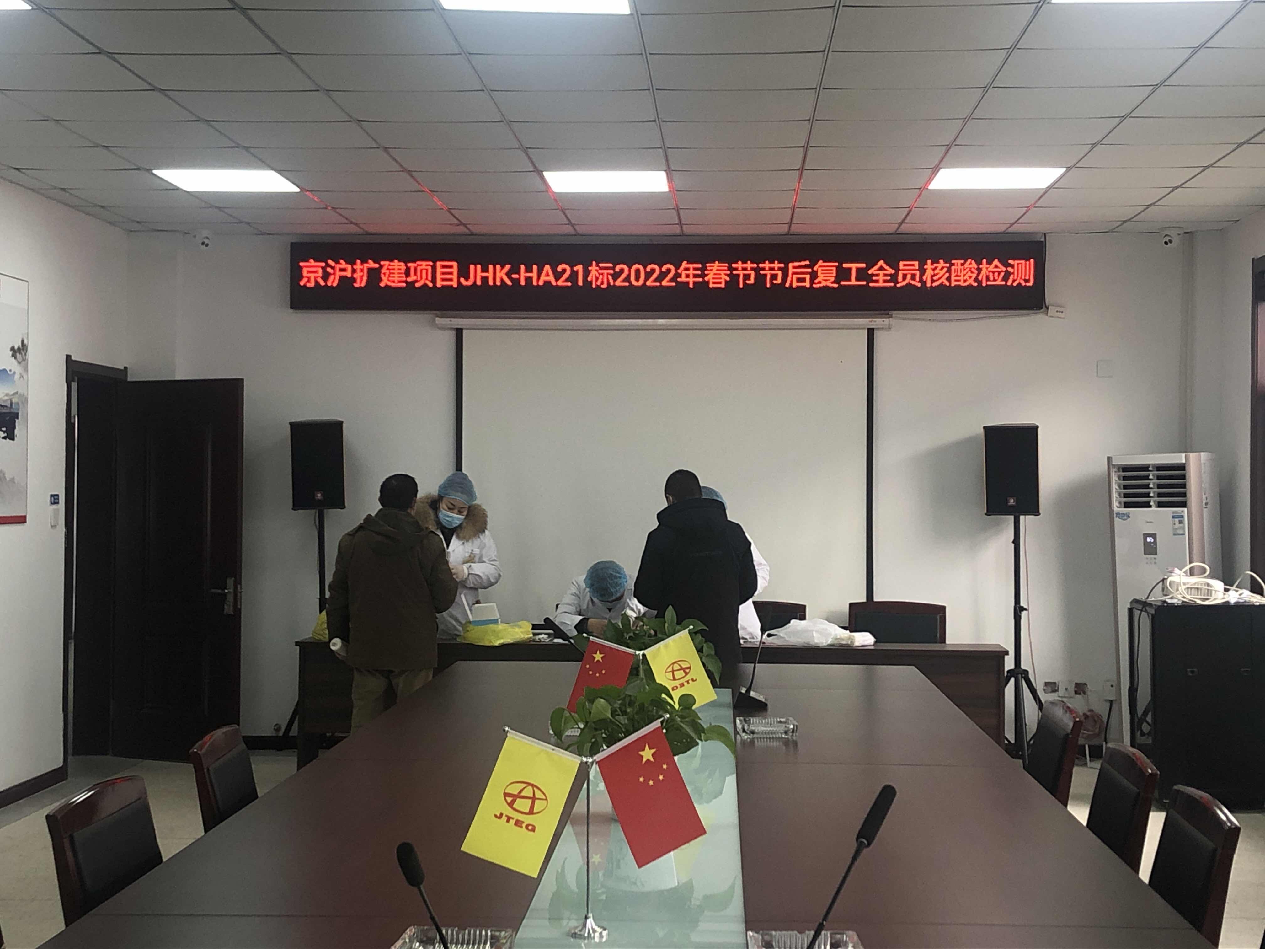 圍繞復(fù)工復(fù)產(chǎn),江蘇交工京滬高速擴建淮安21標(biāo)項目部“全員核酸檢測、節(jié)后復(fù)工安全教育培訓(xùn)、安全專項排查”多措并舉,齊心協(xié)力擰緊復(fù)工“安全閥”,筑牢防疫“防火墻”,為打響虎年首季“開門紅”奠定基礎(chǔ),確保全線施工生產(chǎn)安全高效推進(jìn)。截至目前,項目一線施工人員已全員到位,投入到緊張有序的工作中。當(dāng)前,項目部正計劃進(jìn)行水穩(wěn)攤鋪工作,朝著年底主線通車目標(biāo)全面沖刺。