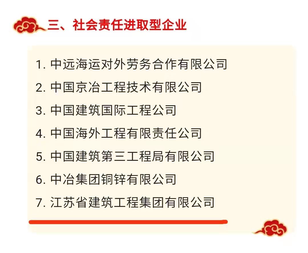 集團(tuán)獲評(píng)中國對(duì)外承包工程“社會(huì)責(zé)任進(jìn)取型”企業(yè)