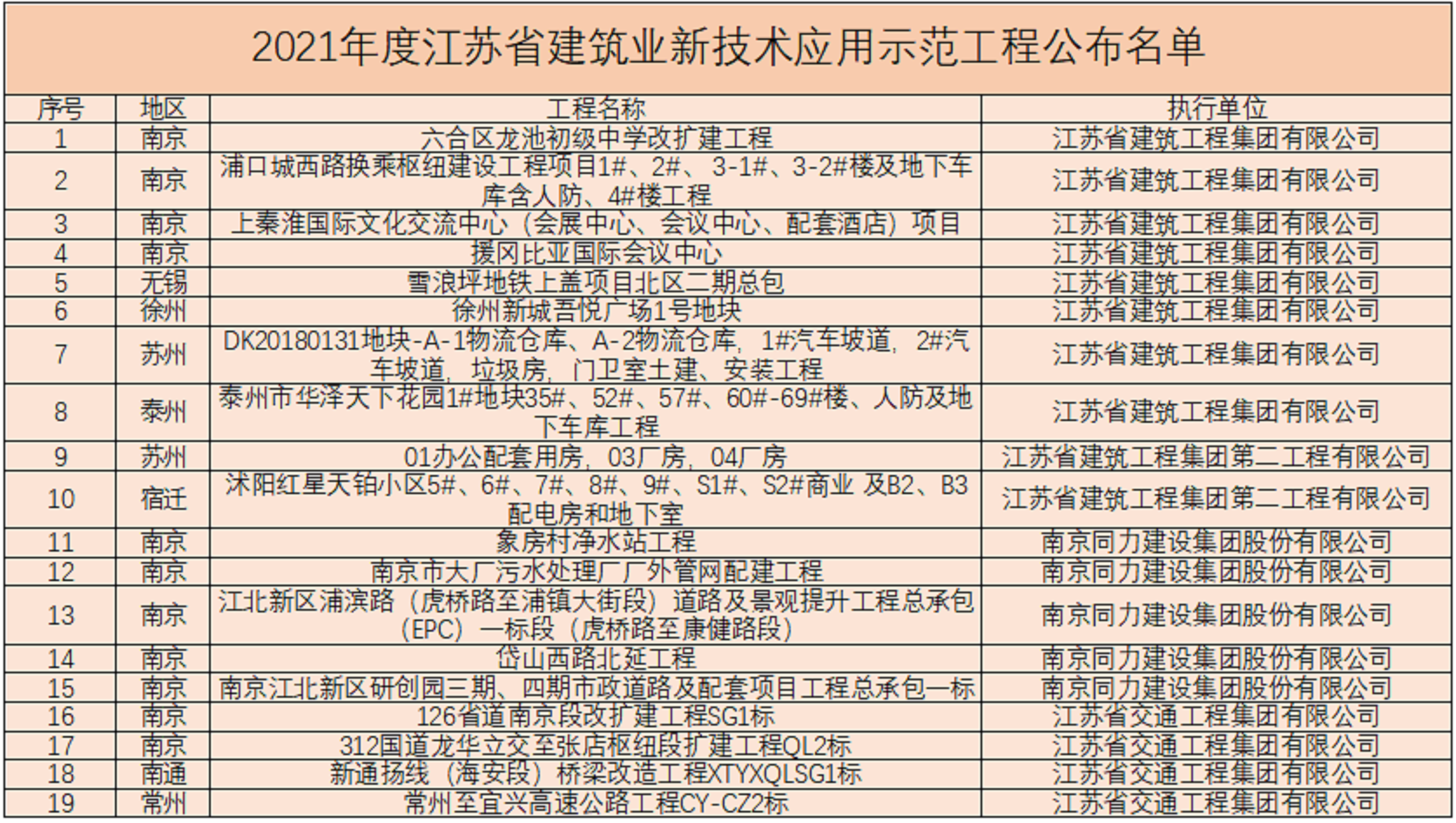 █2021年度江蘇省建筑業(yè)新技術應用示范工程公布名單