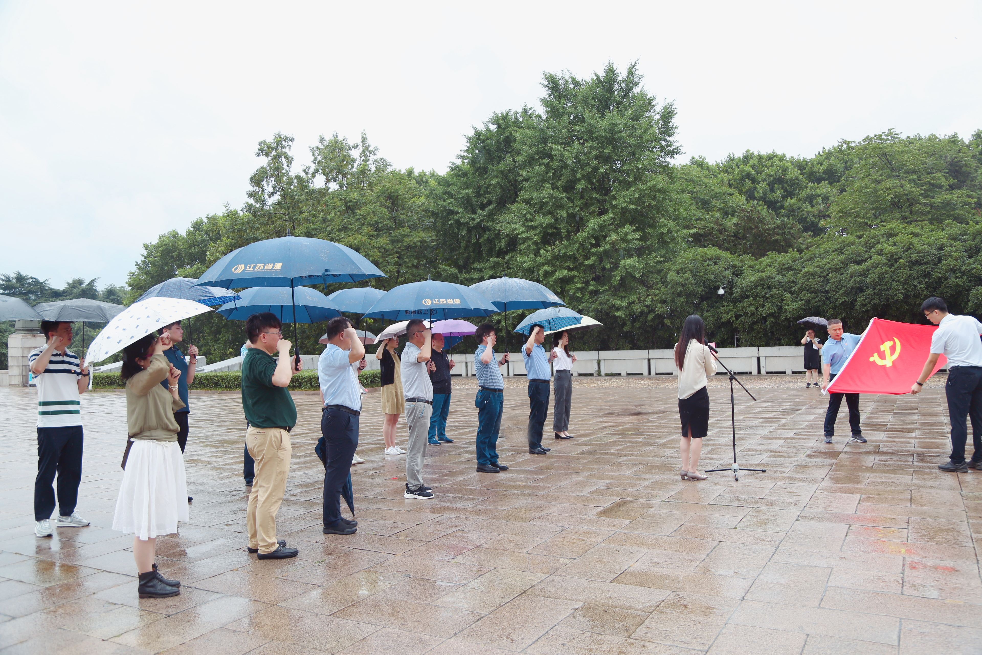 細雨紛紛,松柏蒼翠,哀思連綿,此景此情中,雨花臺烈士陵園顯得格外莊嚴肅穆,大家懷著無比崇敬的心情走進園中,在這片血與火澆灌出的熱土之上,黨員們站在巍峨的雨花臺烈士紀念碑前,列隊肅立、集體默哀,向革命先烈憑吊致敬。