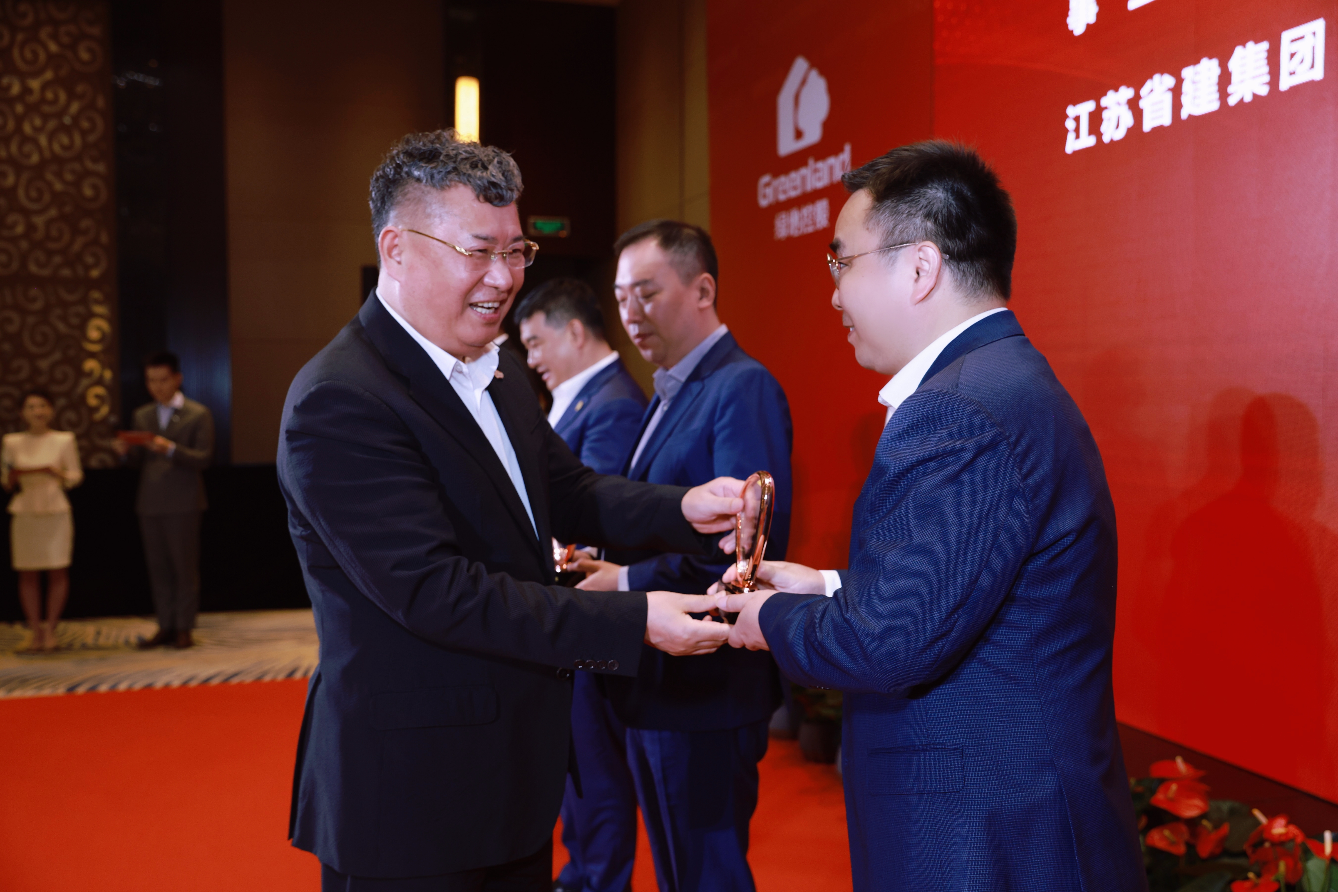 在7月17日舉行的綠地集團半年度工作會議上,為充分調(diào)動積極性、傳遞正能量,激勵各單位以飽滿的精氣神和旺盛的戰(zhàn)斗力投入到下半年的工作中去,全力沖刺全年各項目標任務,綠地集團表彰了半年度總裁特別嘉獎單位,江蘇省建榮獲“總裁特別嘉獎?拼搏進取獎”,綠地集團董事長、總裁張玉良親自為江蘇省建頒獎,集團總裁蔣寧代表江蘇省建領獎。集團黨委書記仇天青等參加會議。