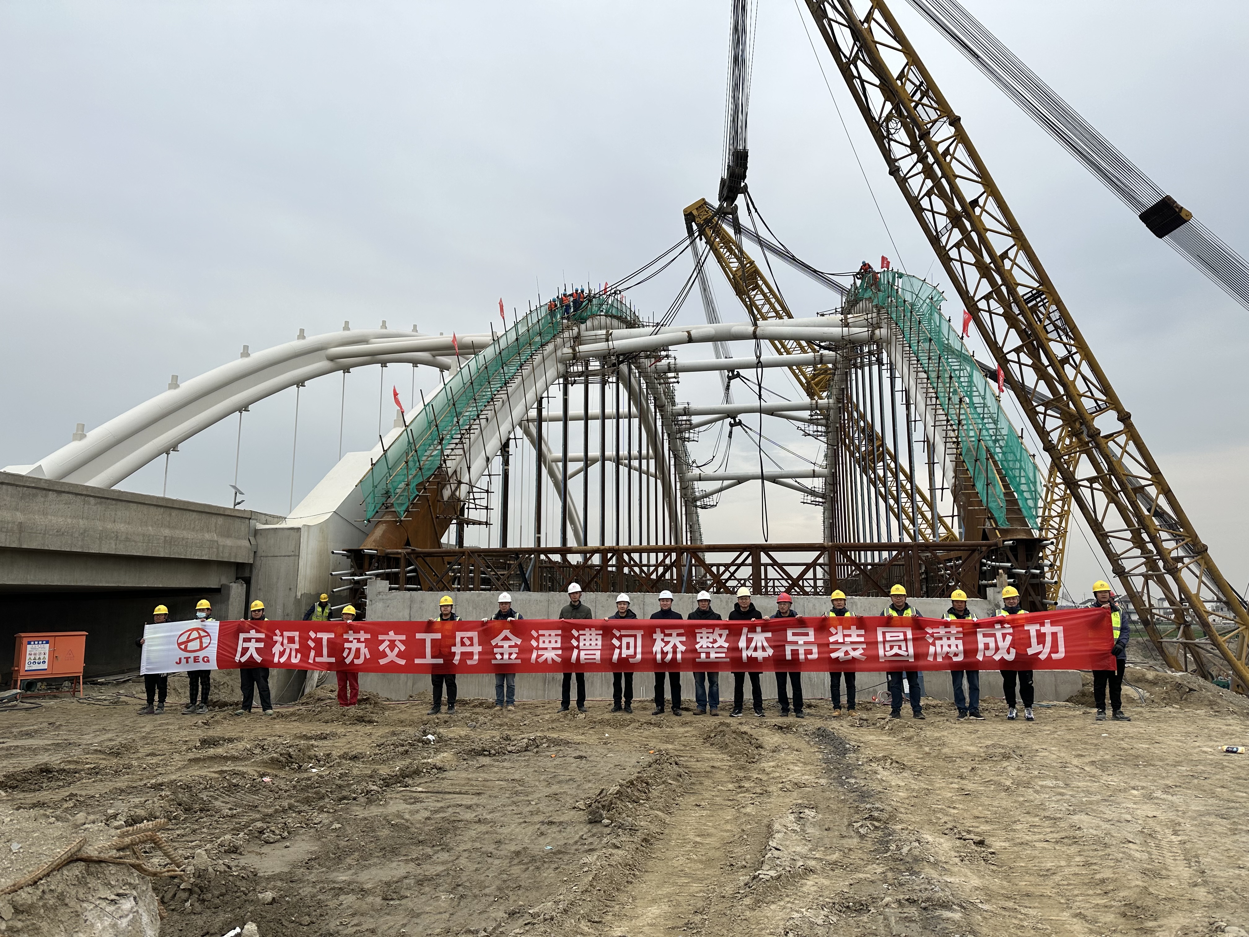 2月22日,經(jīng)過江蘇交工全體工程建設(shè)人員的共同努力,丹金溧漕河丹陽段新建312國道橋右幅主拱吊裝施工圓滿完成。
