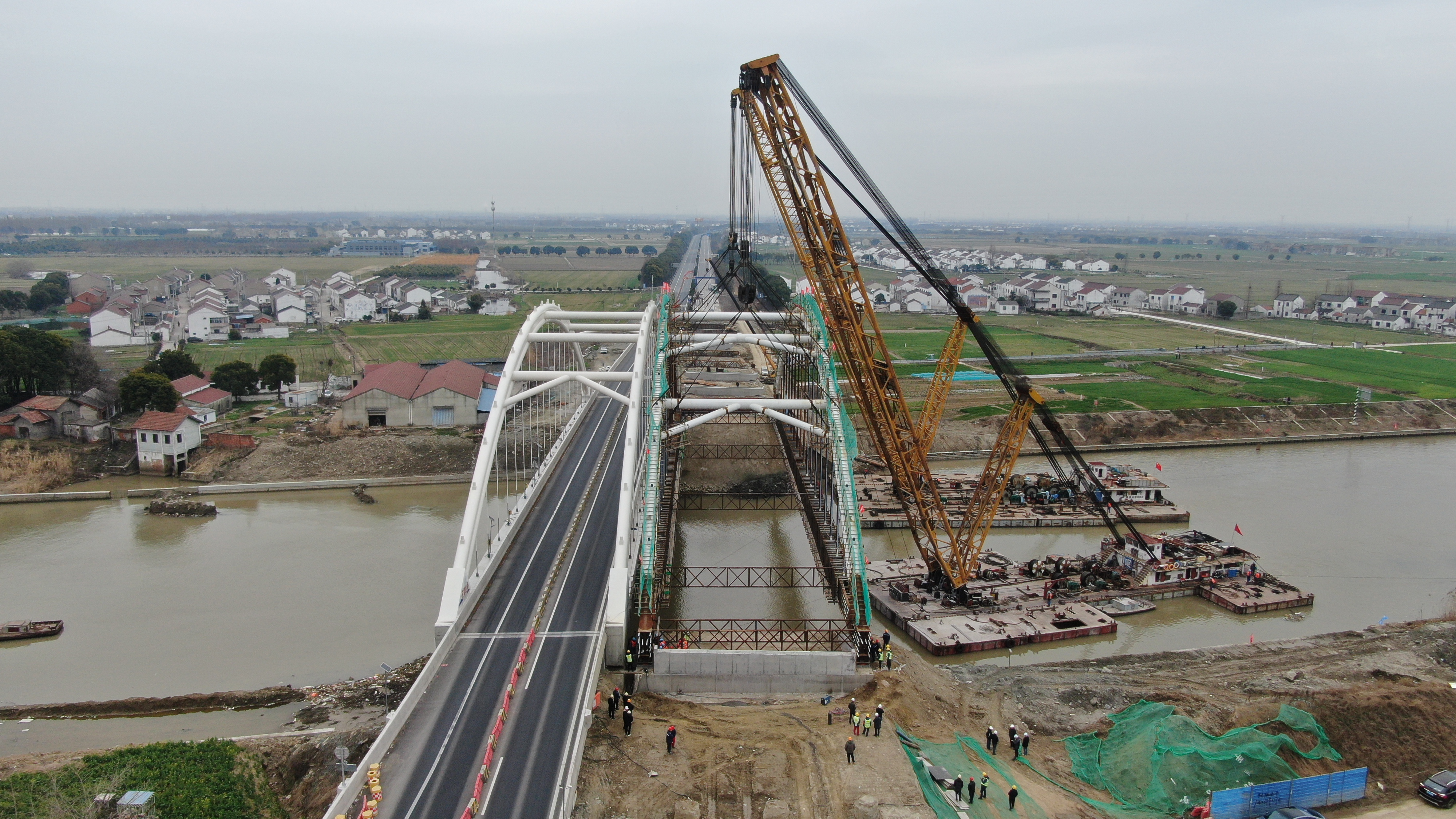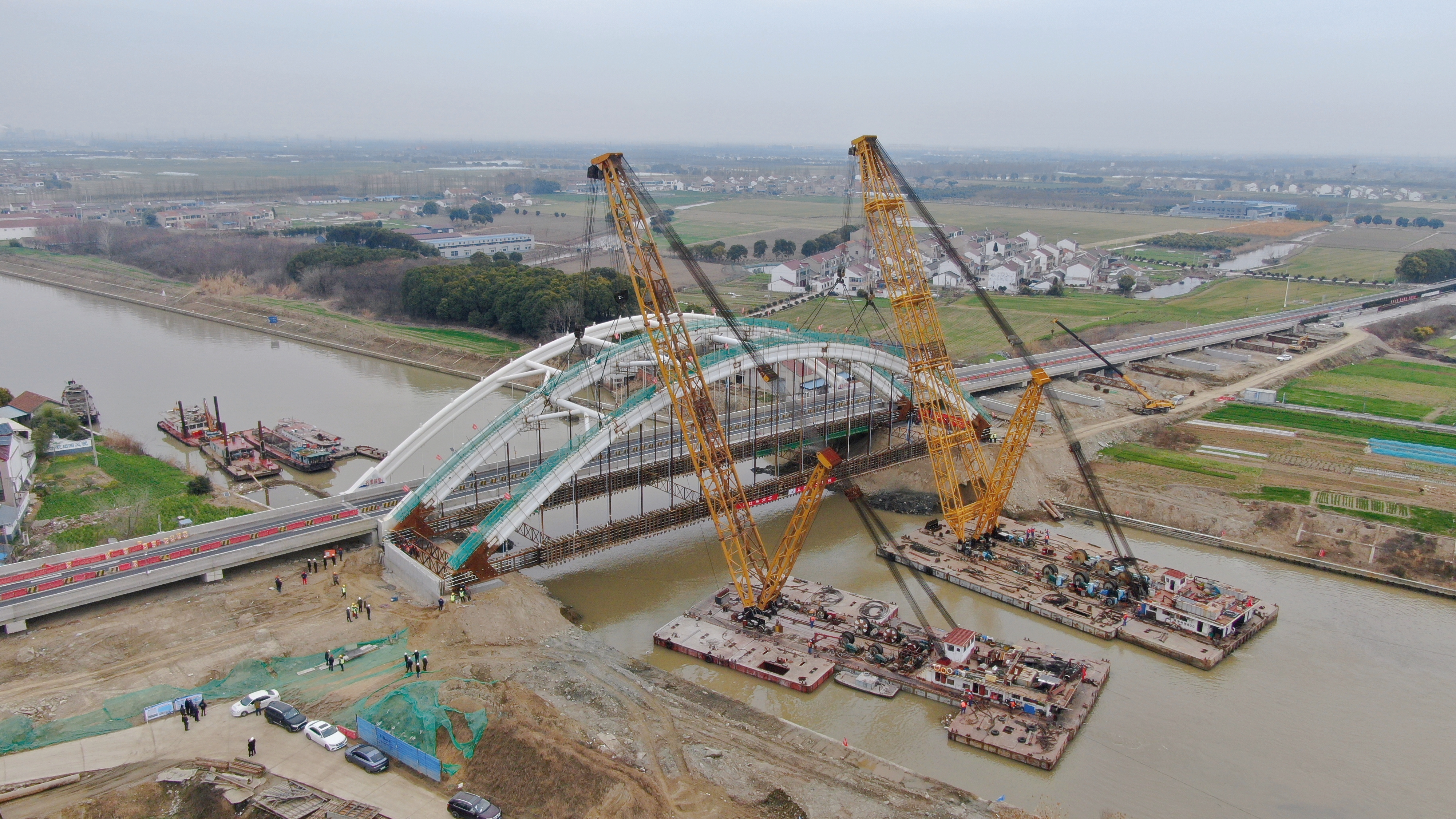 重點(diǎn)工程沖刺開門紅!丹金溧漕河新建312國道橋右幅主拱吊裝成功
