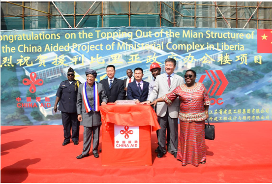 利比里亞總統(tǒng)出席援利政府辦公樓封頂儀式