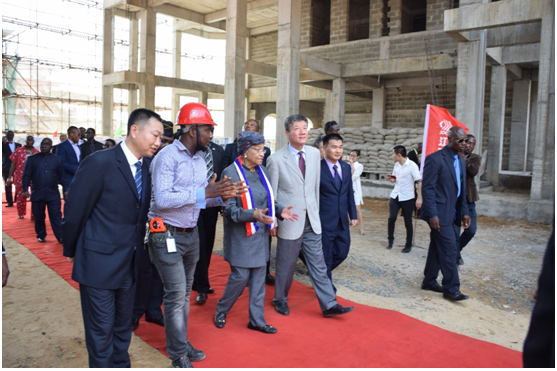 活動(dòng)結(jié)束后,瑟利夫總統(tǒng)、中國(guó)駐利比里亞大使張?jiān)皆诩瘓F(tuán)援利項(xiàng)目負(fù)責(zé)人的陪同下參觀了項(xiàng)目施工現(xiàn)場(chǎng),對(duì)于項(xiàng)目所取得的成就給予了高度肯定和評(píng)價(jià),同時(shí)也期望項(xiàng)目能夠早日竣工投入使用。