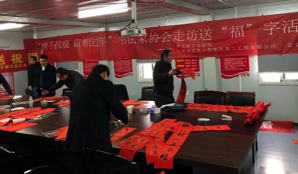 春節(jié)期間,第二工程公司蘇州國際會議酒店項目仍處于緊鑼密鼓加快生產(chǎn)的氛圍中,但年味一點都不少。書法協(xié)會的書法家們節(jié)前來到項目現(xiàn)場,揮墨書寫出一幅幅春聯(lián)和一張張“?!弊?,為奮斗在一線的施工人員送上新春祝福。