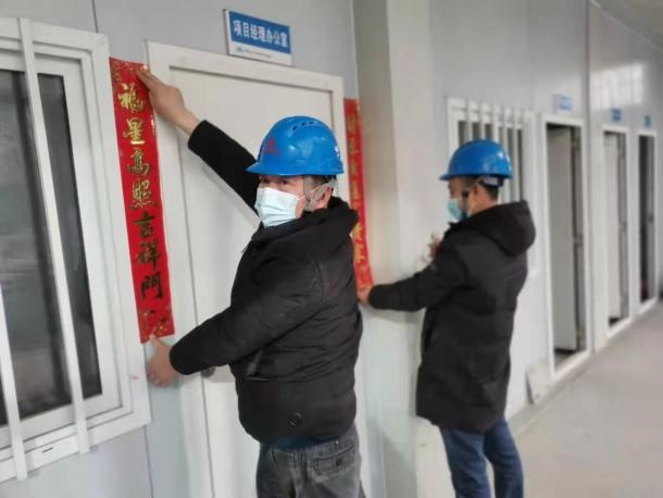 在春節(jié)濃濃的年味里,北方區(qū)域公司清華大學(xué)經(jīng)管學(xué)院擴建及三創(chuàng)中心項目員工正全力以赴搶奪工期,加班加點進行水電安裝、消防工程、精裝修及園林綠化作業(yè),并保證每日現(xiàn)場消殺次數(shù),在確保疫情防控的同時,保質(zhì)保量地完成項目施工任務(wù),為清華大學(xué)110周年校慶獻禮。項目部為值守人員準備了雞鴨魚肉等年貨,并通過貼福字、掛春聯(lián)、吃年夜飯等活動,營造“京味“春節(jié)氛圍,讓大家度過了一個別樣充實溫暖的新年。