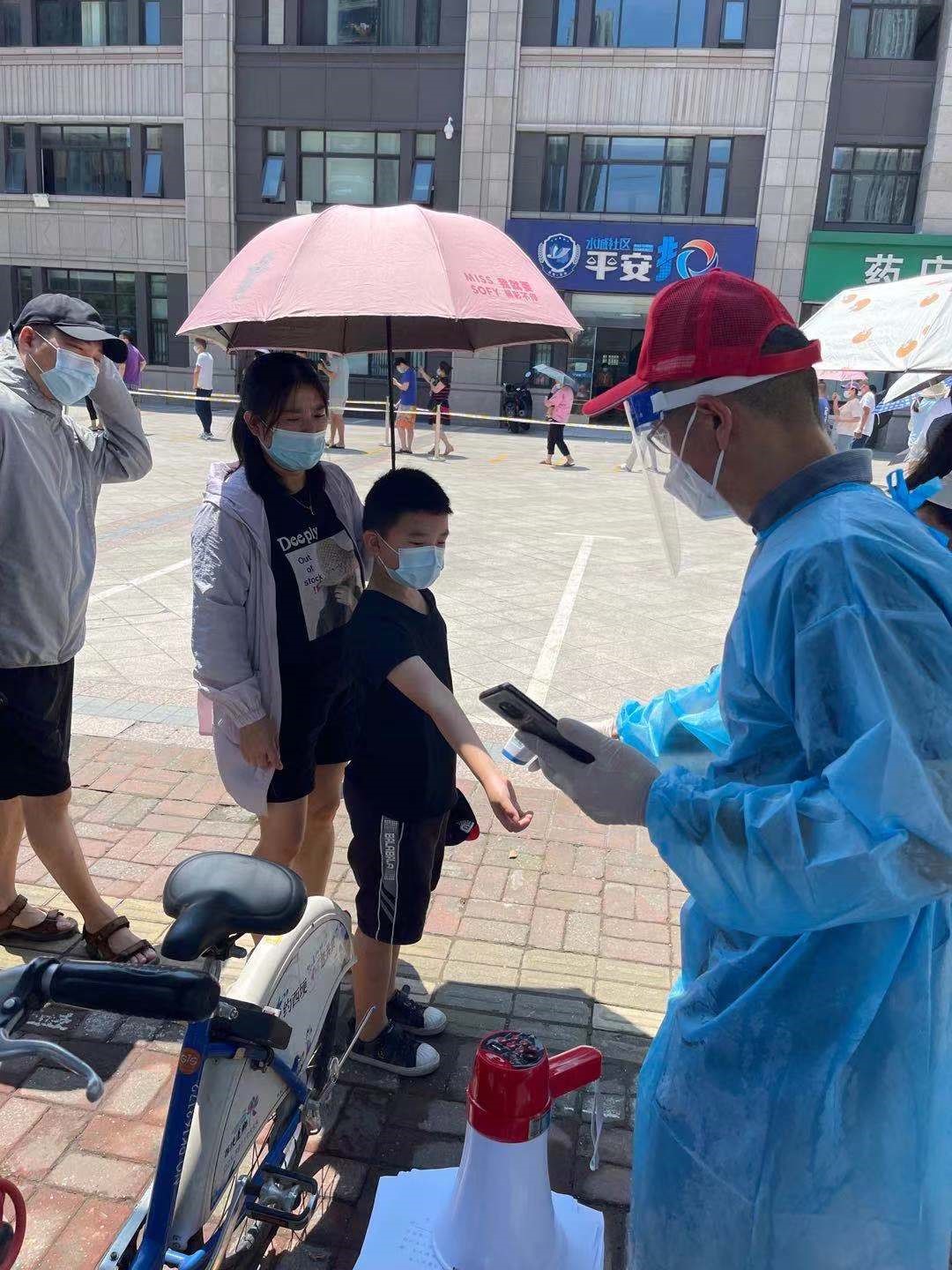 “疫情當前,我們青年責任在肩,使命在前。我們希望能盡己所能為抗擊疫情添一份力,南京加油?!?7月30日,在沿江街道水城社區(qū)核酸檢測點,同力建設27名志愿者正在進行體溫測量、檢測登記、疑難解答、秩序維護等工作。天氣酷熱,汗水濕透了衣背,他們仍然選擇堅守,因為他們心里明白開展核酸檢測的速度就是戰(zhàn)勝疫情的力度。