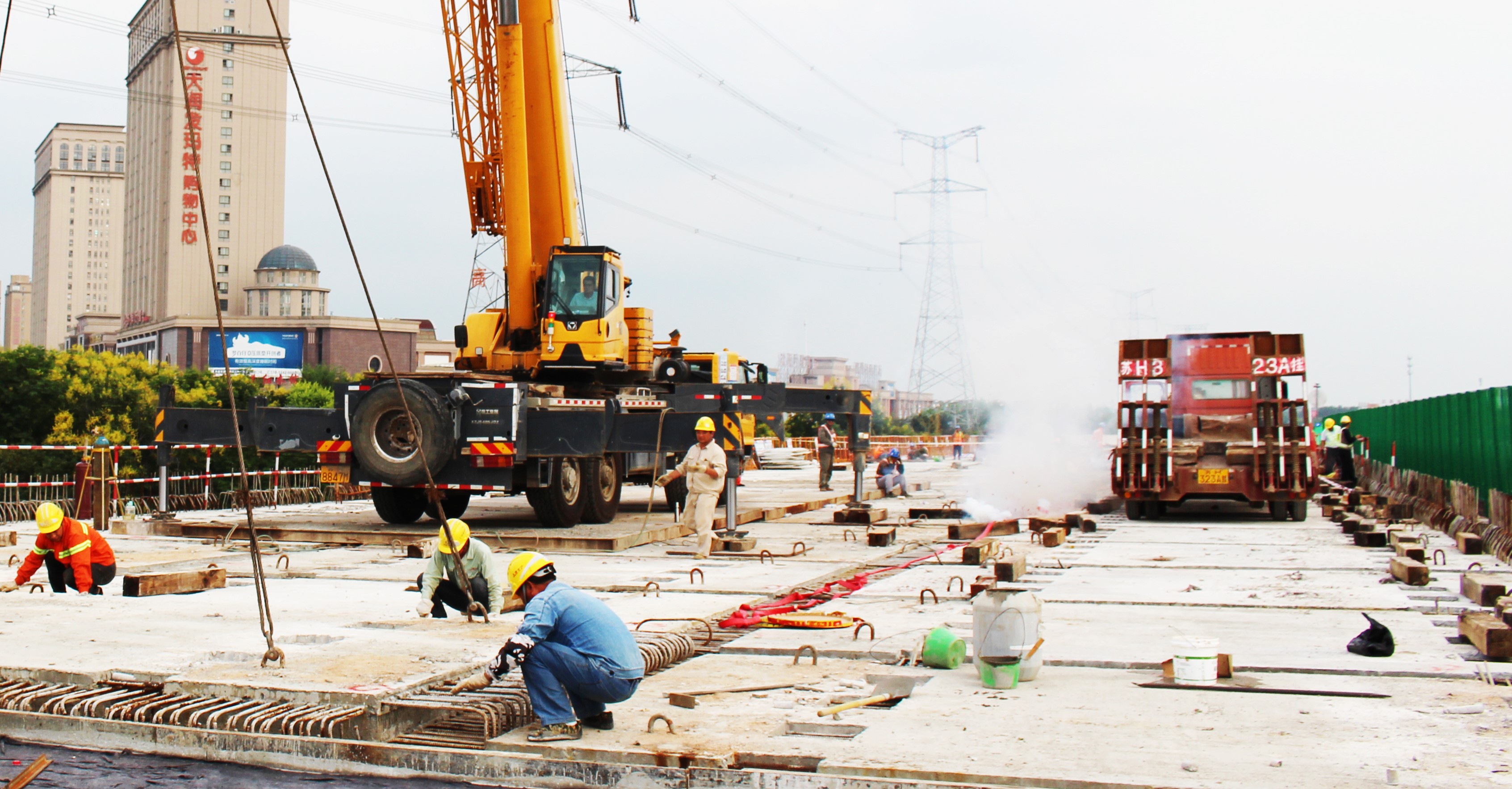 京滬擴(kuò)建沭陽3標(biāo)迎賓大道第四聯(lián)疊合板圓滿安裝