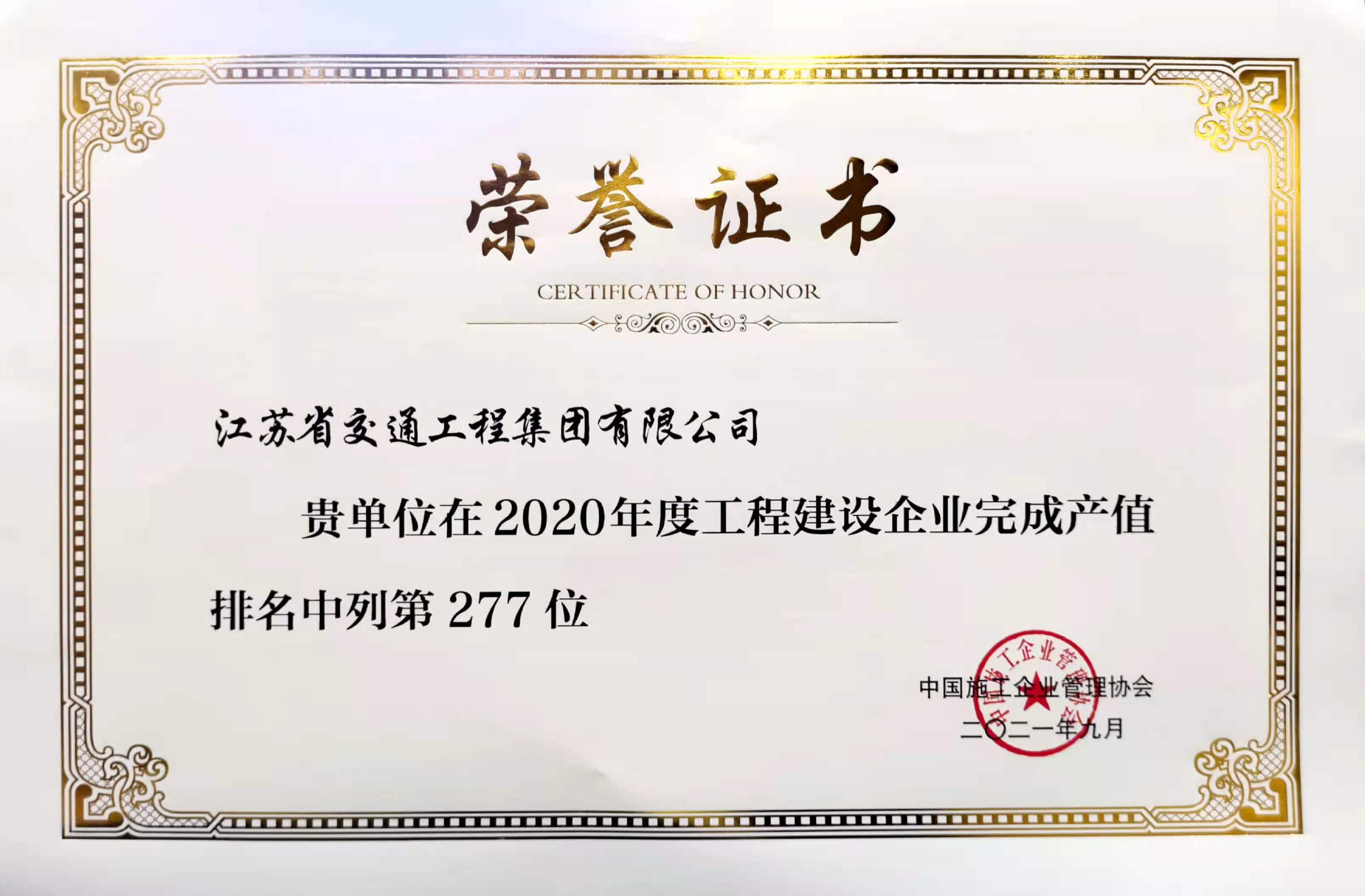 10月20日,中國施工企業(yè)管理協(xié)會公布了2020年度全國完成產值超100億元工程建設企業(yè)名單,江蘇交工以出色成績位列名單第277名。