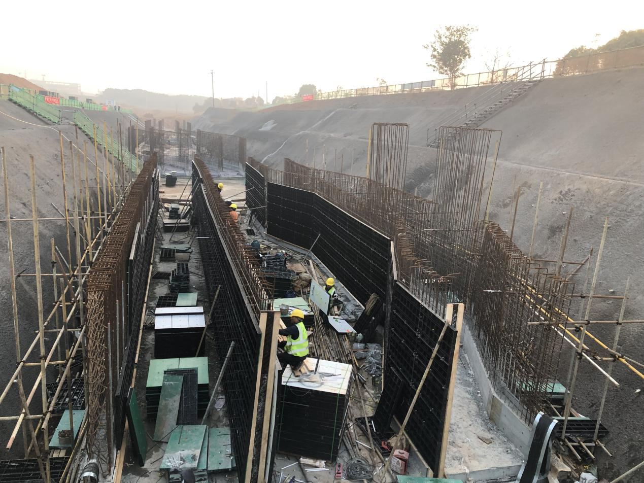 結(jié)合項(xiàng)目上的施工節(jié)點(diǎn)要求和總體的施工計(jì)劃兩條主線,各路段穩(wěn)步推進(jìn)施工工作。目前三清山管廊(科創(chuàng)大街-V谷大街)段現(xiàn)已完成19倉到27倉的開挖、錨桿施工、噴錨工作,以及完成19倉、21倉、23倉的底板澆筑和25倉的底板鋼筋綁扎工作,預(yù)計(jì)到11月底能完成25倉的底板澆筑工作以及19倉墻身及頂板模板搭設(shè)。實(shí)訓(xùn)基地規(guī)劃S3路(規(guī)劃R5路-常湖池大街)段現(xiàn)已完成人行道級(jí)配碎石施工200米,樹池石安裝80套,底層瀝青攤鋪完成,預(yù)計(jì)到11月底完成人行道透水砼施工。