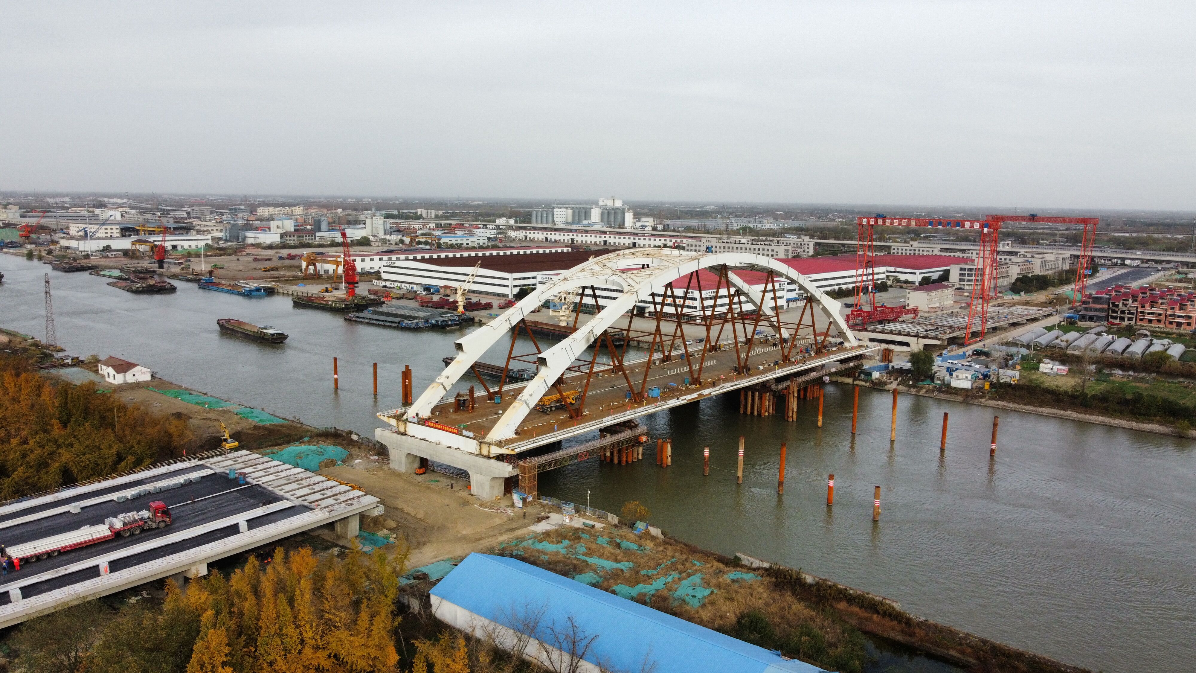 █泰州青年路北延新通揚(yáng)運(yùn)河橋整體頂推完成