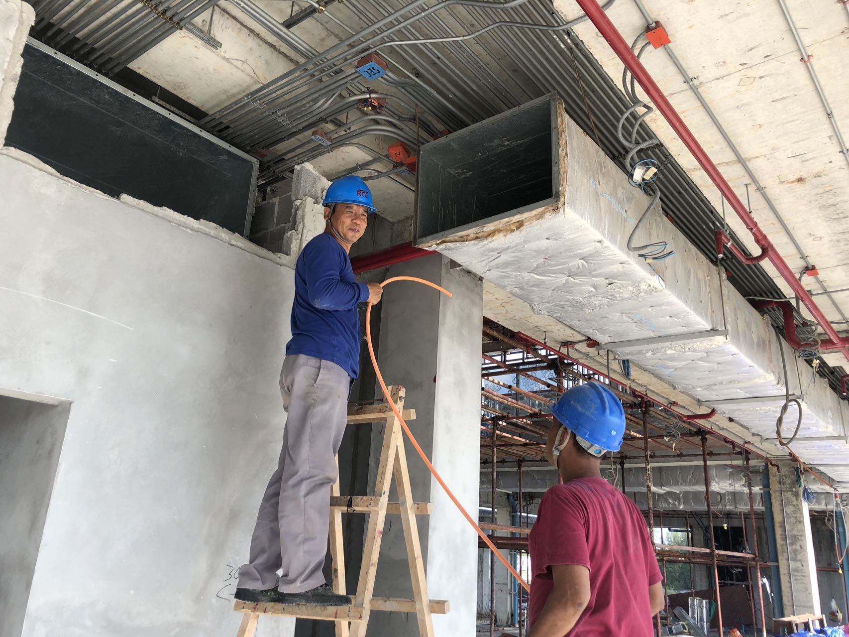 在美的(泰國)制冷設備廠房項目施工現(xiàn)場,四百多名建設者正在緊張忙碌著,施工過程中嚴格按照業(yè)主單位的統(tǒng)一協(xié)調(diào)與安排,勇?lián)厝?,目前項目鋼結(jié)構(gòu)工程已全部完成,總體階段工程已經(jīng)完成80%。在祖國新春團圓的日子里,他們依然堅守在工作崗位上,不怕艱難、堅守初心,只為筑牢工程按時竣工的基礎。