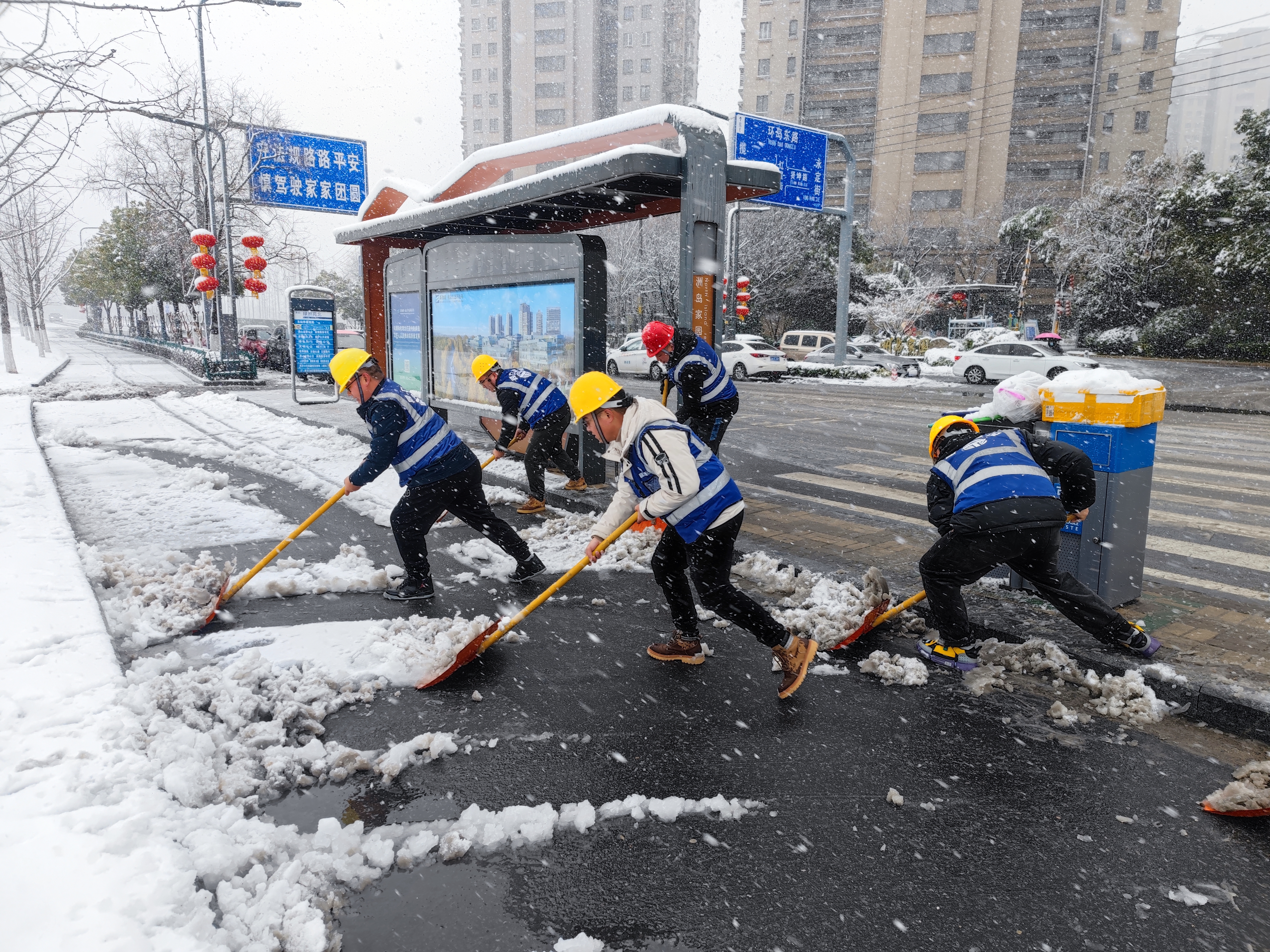 一場(chǎng)大雪,使得江心洲道路積雪難行,江心洲項(xiàng)目部用最快的速度清理道路積雪,以實(shí)際行動(dòng)保障道路暢通,忙碌的身影給漫天大雪增添了一道文明亮麗的風(fēng)景。