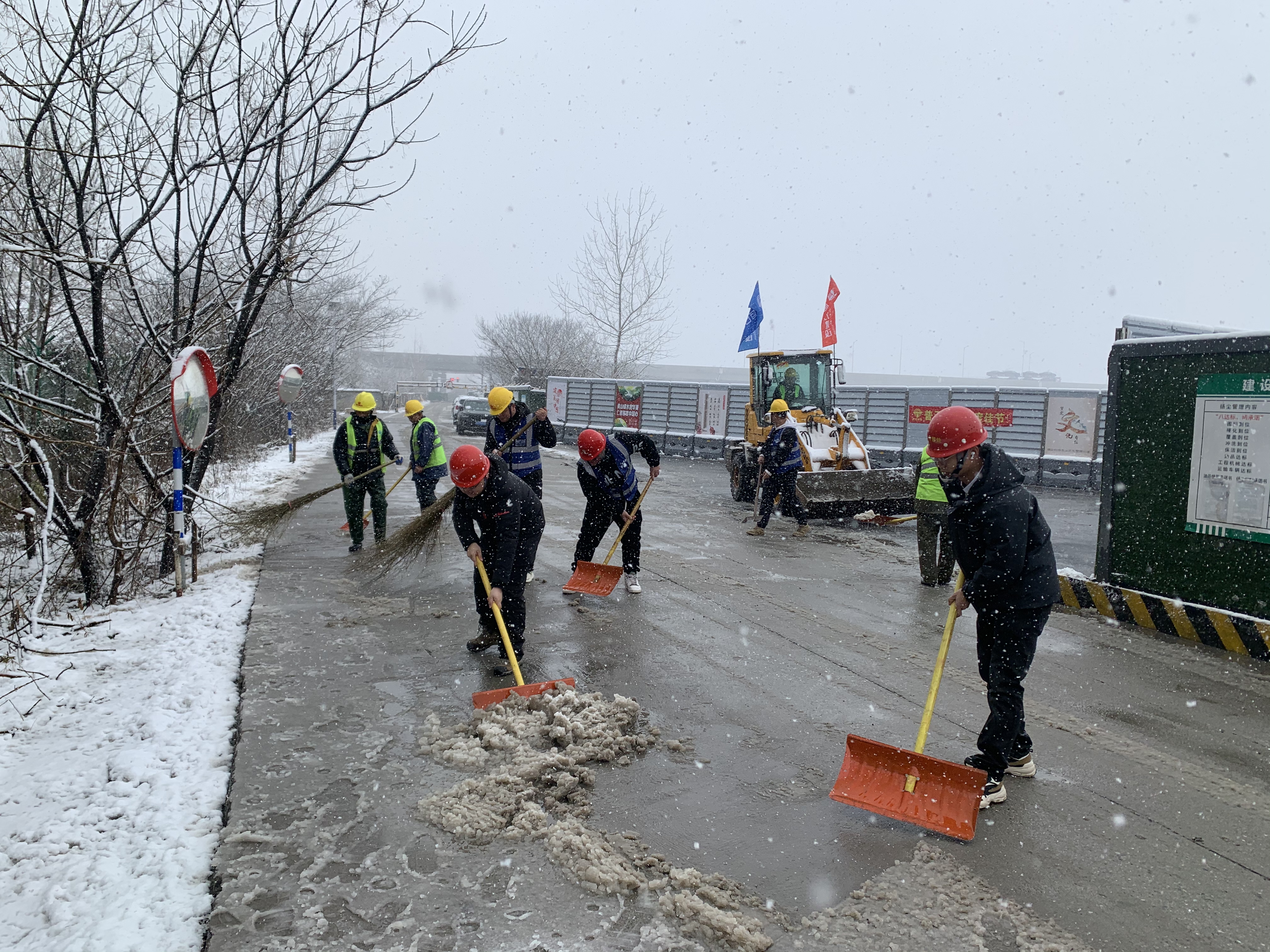 地鐵5號(hào)線(xiàn)項(xiàng)目部按照事先制定的掃雪防凍方案要求,組織項(xiàng)目部管理人員及部分盾構(gòu)工人,對(duì)項(xiàng)目部周邊道路掃雪融冰,確保人員車(chē)輛通行。