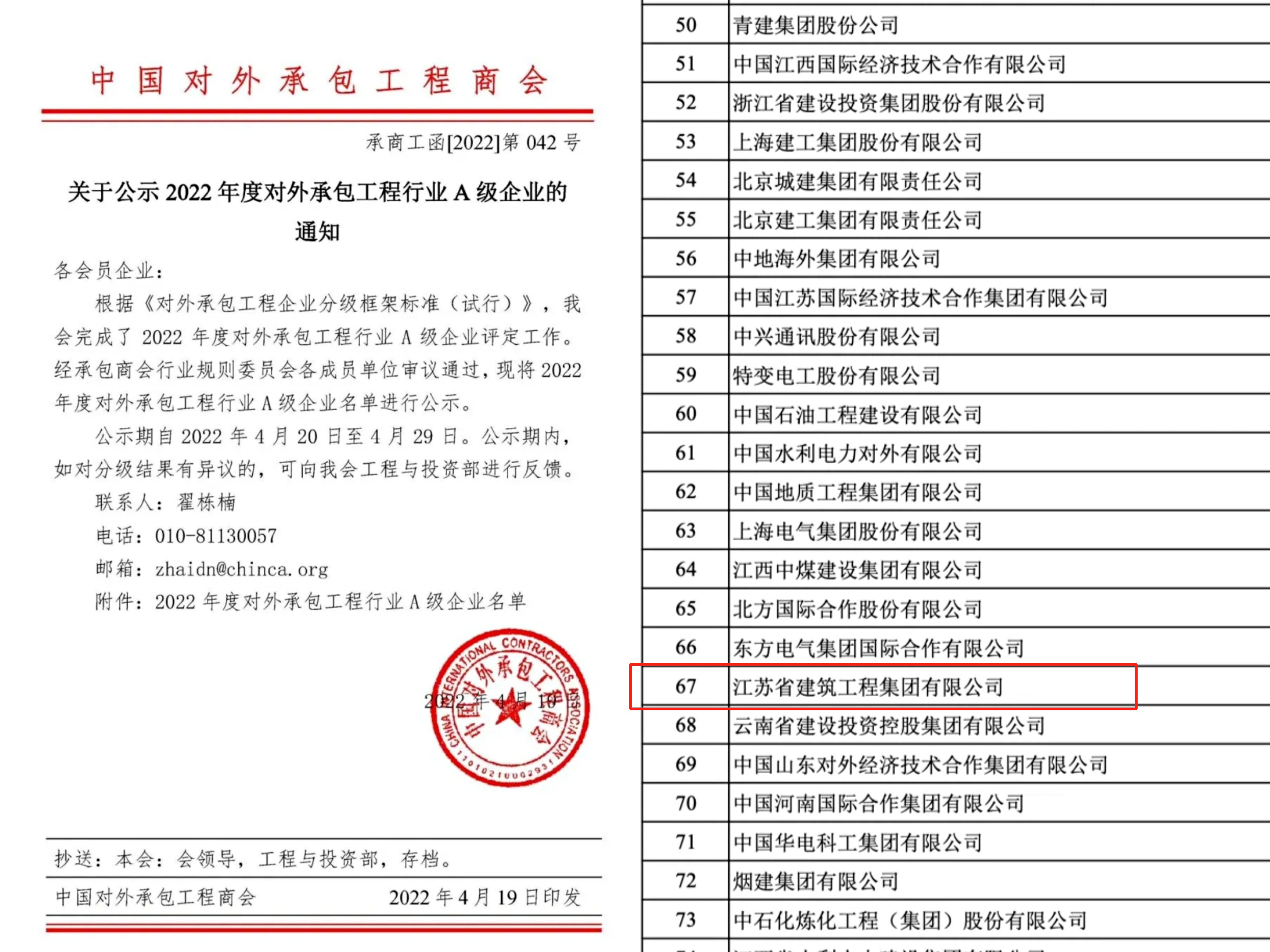 █位列對(duì)外承包工程企業(yè)100強(qiáng)第69名